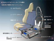 equipped with a pair of pulse-monitoring pressure sensors in the seat-back and a set of respiration-monitoring sensors underneath.