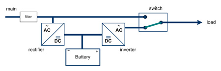 Do You Need A UPS? (Page 3)3. Online UPS This design is considered to be a "true" UPS. Unlike the other types of UPS, this one uses the battery as its main source of power and the line power is the secondary source of power. When line power goes out, the UPS does not have to convert from one power source to another. It just stops charging the battery. This is similar to the way laptops react when they are unplugged from line power. When there isn't any line power the battery will keep powering the system until its stored power is depleted. Since this type of UPS design runs off the battery, the equipment plugged into it will always maintain a constant flow of power. Any surges or brownouts will be taken in at the battery charger and not passed on to the equipment.